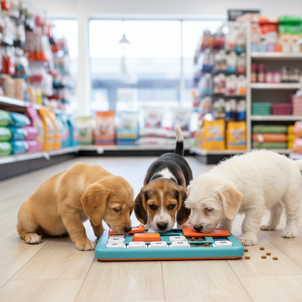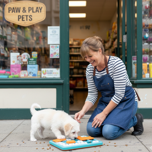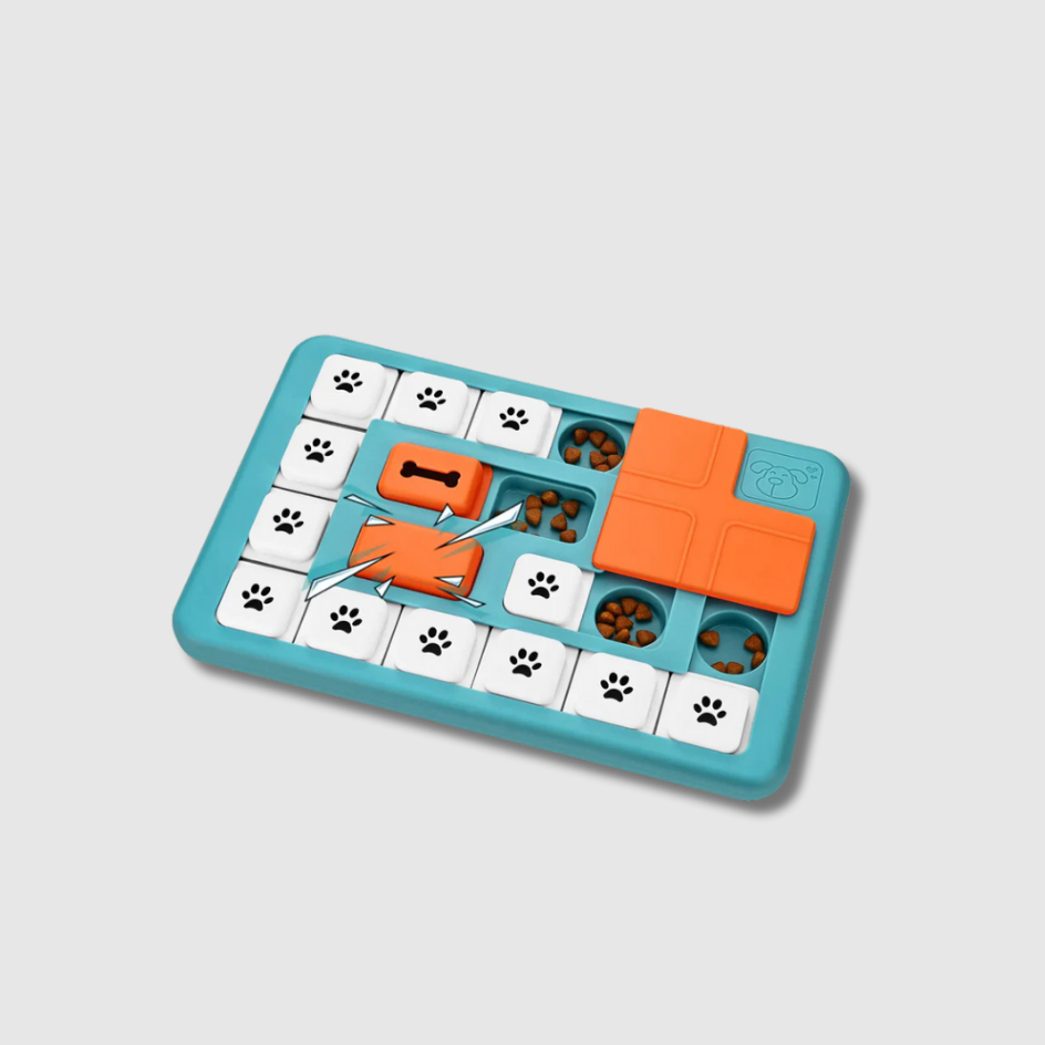 The push-down squeaker, in the middle of the puzzle is a great thing to use to signal to your dog it's time to play this puzzle game.